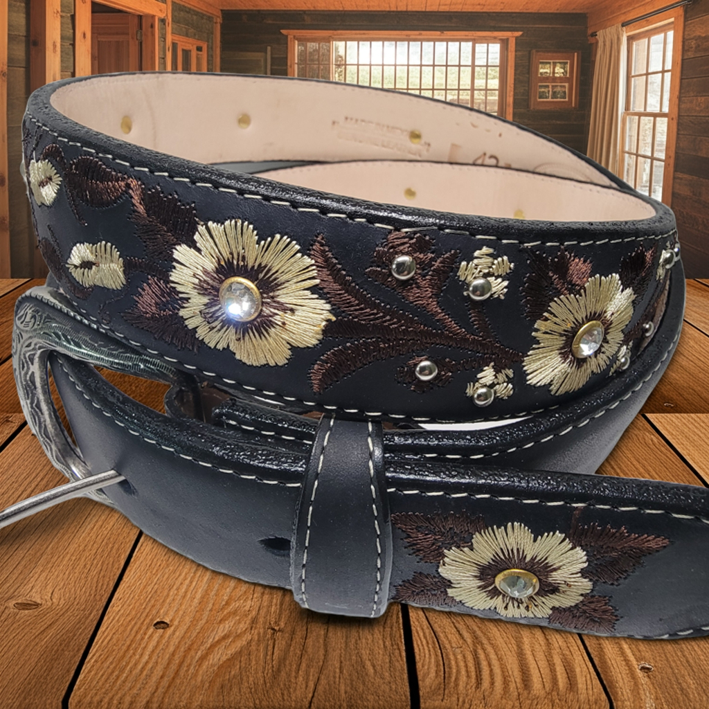 Cinturón de cuero hecho a mano. Dorado y marrón.
