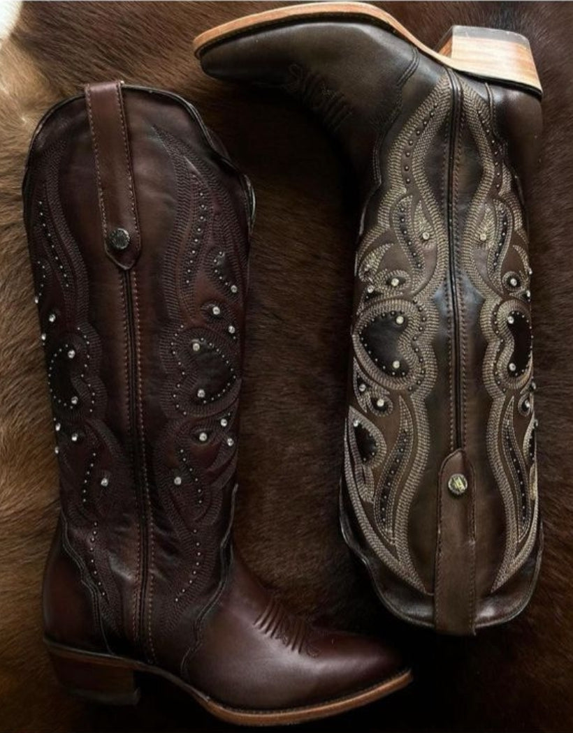 Bota vaquera para mujer, alta, de vestir, de piel flor